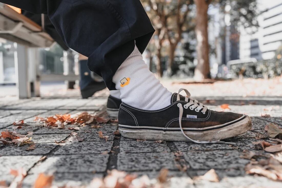 乾式紡糸法によりアクリルとコットンを織り交ぜて作られたソックスは吸湿性が高く履き心地も抜群。